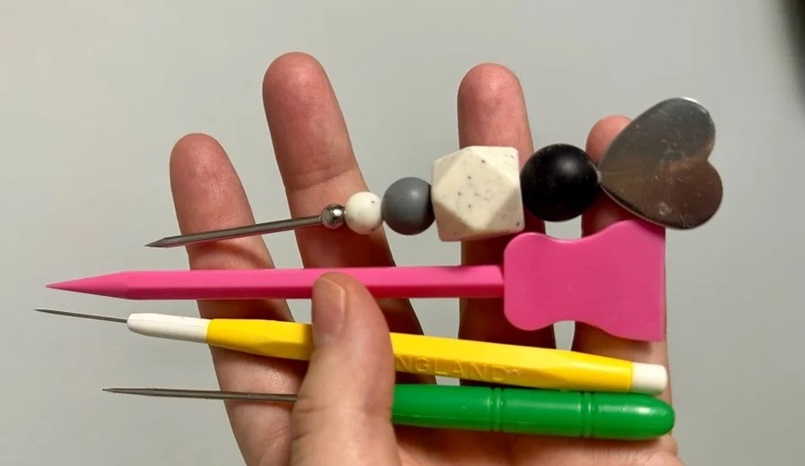 Scribe is a pointy tool essential when working with Royal Icing. It helps to pop air bubbles, position sprinkles, evenly distribute icing into the corners of flooded cookies and to do other decorating techniques, especially Wet-on-wet technique. It's possible to use a toothpick instead, but metal or plastic is better, since icing doesn't stick to metal the same way as it does to wood.