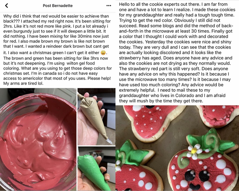 This happens because if you want to achieve a rich, vibrant shade (for your Santa cookies, for example), you need to add a lot of food coloring.